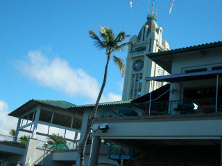 ハワイのシンボルマークのアロハタワーと洒落たショッピングモールが展開されていた。